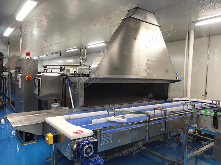 通過輸送帶連續(xù)前進(jìn),將物料輸送進(jìn)入熱水中進(jìn)行加熱殺菌處理,一般溫度在80℃到100℃之前,且設(shè)有冷卻段,殺菌后物料可快速冷卻到室溫,保證產(chǎn)品的質(zhì)量和口感。