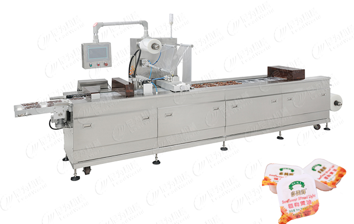 黃油真空包裝機是利用可拉伸和熱塑的薄膜或片材作為原料來制造容器,在裝填物料后再以薄膜或片材覆蓋進行抽真空和氣調密封的包裝設備。